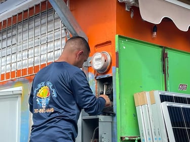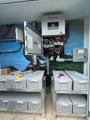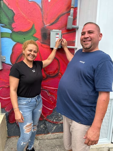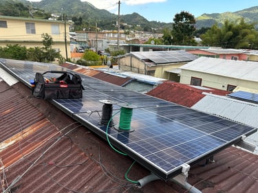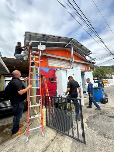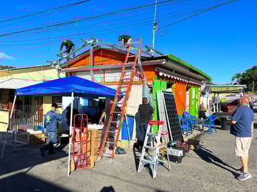 En el colmado se instalaron 24 módulos monocristalinos de 400 vatios, 12 baterías selladas de 250 amperes y un inversor de 15 kilovatios. El negocio opera totalmente con el sol y su factura de luz bajó de sobre $400 mensuales a $5 con el sol. En las residencias, entretanto, se colocaron equipos de emergencia compuestos por seis paneles fotovoltaicos, cuatro baterías que proveerán una reserva de 12 kilos y un inversor de 3,000 vatios. Esto, con el objetivo de que provean energía cuando ocurra un apagón.